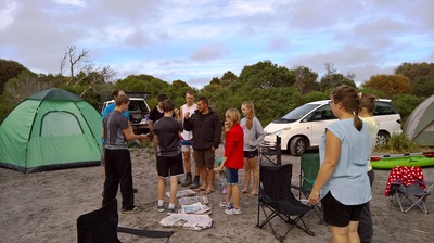 Happy welcome at Devonport Airport - 19 May 2022 for Zach and Wilma Dotson, with Archie and Jayne